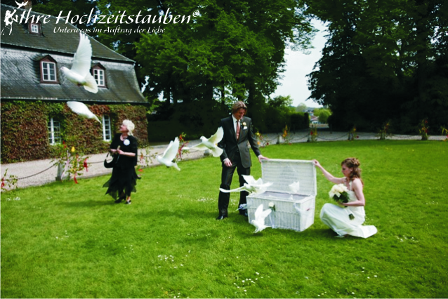 Traumhaftes Ambiente auf Schloss Eicherhoff in Leichlingen. Hier sind unsere Hochzeitstauben jedes Mal ein Hingucker ©Uwe Stoffel |